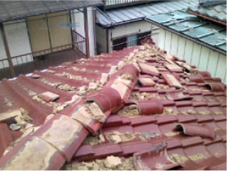 ●一般的な屋根材とは違った施工方法の瓦屋根は、台風や強風後などに被害が多発するという特徴があります