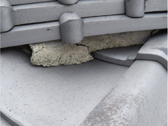 瓦を並べるときにできる隙間を埋める「漆喰」に異変がないかチェックしましょう。剥がれや崩れがあれば、雨水が浸入しているかもしれません。