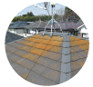 ドローンで点検を行うことで安全に屋根全体の状態を確認することができます。また屋根材が割れるといった点検時のトラブルも起こりません。降雨後など滑りやすい屋根は梯子での点検が難しいですが、ドローンであれば強風・降雨以外の天候時での点検が可能です。