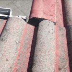 右写真で分かりますが、手前のケラバ部分も破損しているようです。ケラバとは屋根の外壁から出ている屋根部分で雨樋の付いていない部分を言います。