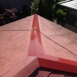 折板の両流れの屋根、胸部分からの漏水を確認しました。なるべくならしない方が良いメンテナンスも施されていましたのでご指摘し、新しい工事のご提案をさせて頂きました。