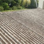 大波スレートも耐用年数を超えており、一部に反りなどが出始めています。大波スレートを固定している鉄骨に錆が出始めていますが、まだまだ使用可能です。今回は大波スレート全てを葺き替えます。