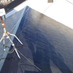 松戸市稔台にてスーパーガルテクト(シェイドチャコール)を使用した屋根カバー工事の様子、金額をご紹介しております