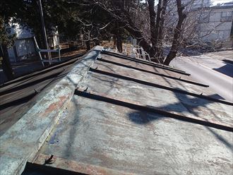 柏市高田にてリフレアルーフⅡ型(グレー)を使用した屋根カバー工事を実施、施工前写真