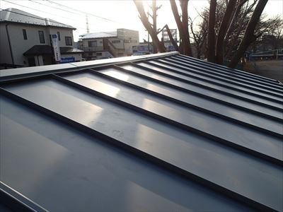 柏市高田にてリフレアルーフⅡ型(グレー)を使用した屋根カバー工事を実施、施工後写真