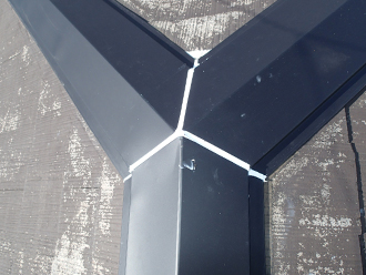 - ●棟板金は、屋根同士の合わさり部分の山状(角)となっている接合部分を覆うことで雨水の浸水を防ぎ、屋根材を固定する役割を果たしています