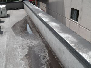 そもそも水を貯めるようには作られてはいません。水が溜まってしまうと様々な部分に悪影響を及ぼします。放置し続けると、建物内に漏れ出し、雨漏りや各部の腐食・劣化につながりかねません。