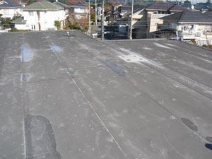 ほぼ全ての防水方法で見られる病状です。雨水の浸入の他、紫外線なども直接あたることになるので、防水層の劣化を加速させます。
