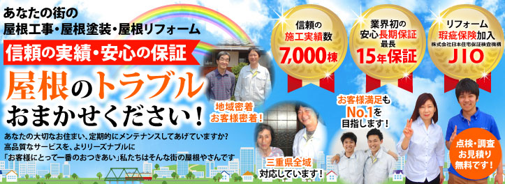 私たち街の屋根やさん伊賀・名張店は伊賀市、名張市を中心に住宅の屋根修理、屋根葺き替え、雨樋修理、屋根の塗り替え、外壁塗装を行っております。