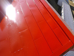 | 最後に上塗りをします。 写真からお分かり頂ける様に、艶と輝きが出て美しい仕上がりとなりました。 雨漏り補修も終わり安心してお過ごし頂けます。 |
