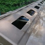 中に入っているものに被害はありませんでしたが、あたる頻度が結構高いので、明り取りと一緒に、屋根全体をカバーする事になりました!