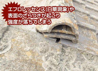 それよりも「お住まいの健康を維持する」「ストレスのない生活を送る」うえで非常に重要なのです。そもそもセメント瓦やモニエル瓦は塗装をすることによって、屋根材の防水性が守られているのですが、塗装が剥げてしまう事によって防水性が失われてしまう事になります。結果として屋根材が雨水を吸い込み、屋根材を弱くするだけでなく最終的に雨漏りにまで発展してしまうリスクがあるのです。