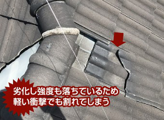 例えばセメント瓦やモニエル瓦は 1 坪あたり50枚程度の屋根材が葺かれており、重さで言うと150kg弱ほどの重量があります。当然お住まいの最上部に重心があるため地震が発生した際には大きな揺れを伴います。