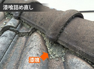 セメント瓦屋根・モニエル瓦屋根の漆喰詰め直し