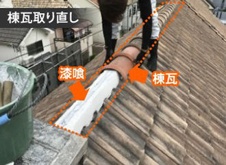 セメント瓦屋根・モニエル瓦屋根の棟瓦取り直し