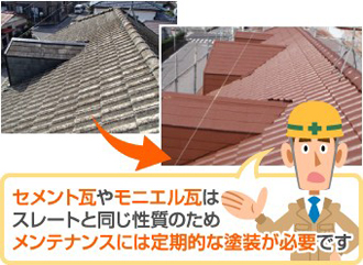 塗り替えが必要となるのがセメント瓦とモニエル瓦