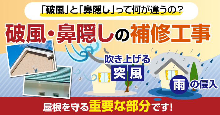 破風も鼻隠しのどちらも、「屋根の先端にある」「外壁から張り出している」と場所的にも似通っている部分です。雨水が屋内に入ることや、屋根の内部に風が吹きこむことを防ぐなど、役割もほぼ共通しています。