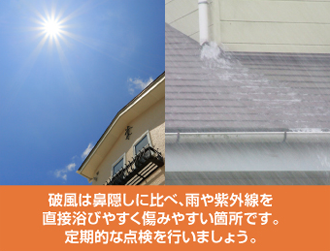 破風は、太陽の紫外線や風の影響を受けやすい箇所です。一方、雨樋が取り付けられている鼻隠しの方が、紫外線や雨風が直接的にあたりにくいでしょう。