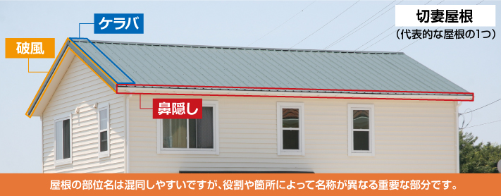 「破風(はふ)」と「鼻隠し(はなかくし)」は屋根の重要な部分