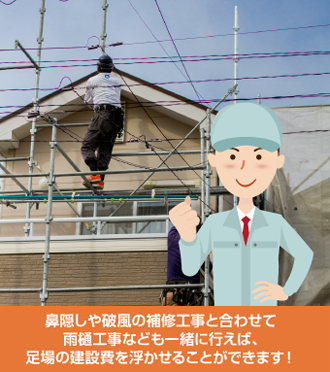 補修工事は一度の足場仮設でまとめた方が費用面でも心理的にもお得
