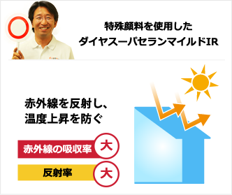 特殊顔料の採用で日射を反射し、温度上昇を抑制