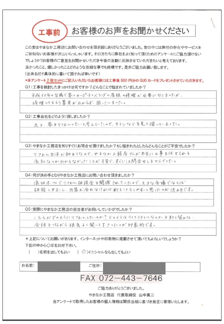 柳井市で屋根の葺き替え工事をさせていただいたお客様