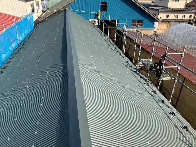 石巻市日和が丘にて台風により棟包みが破損したため交換工事