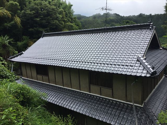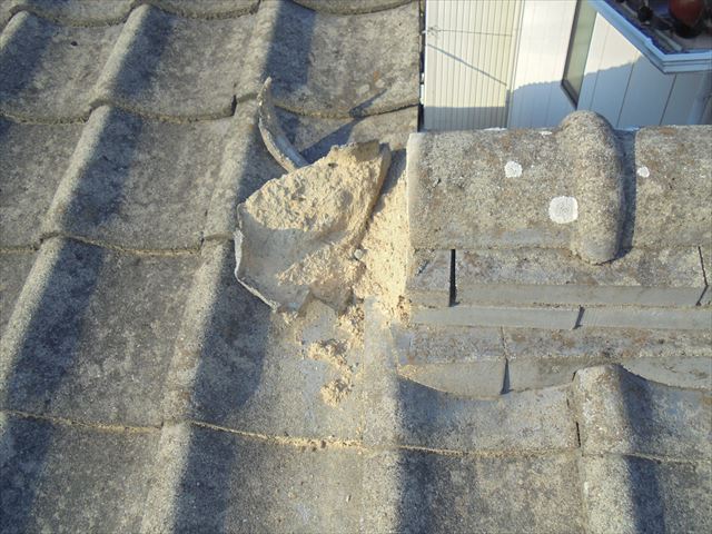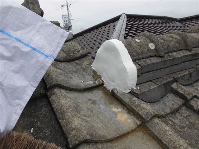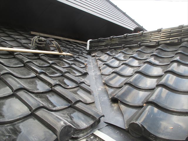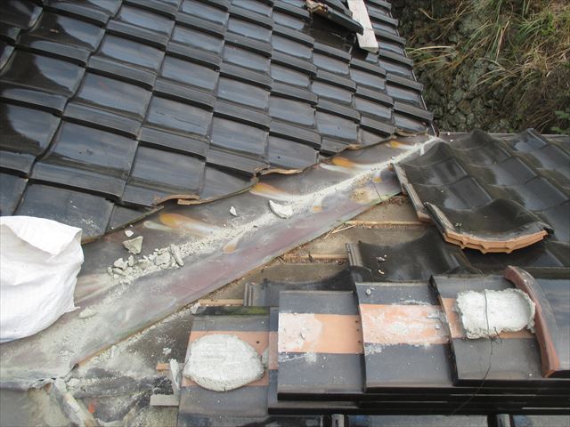 玉野市で雨漏りしたセメント瓦屋根の下地補修と瓦のずれ直し