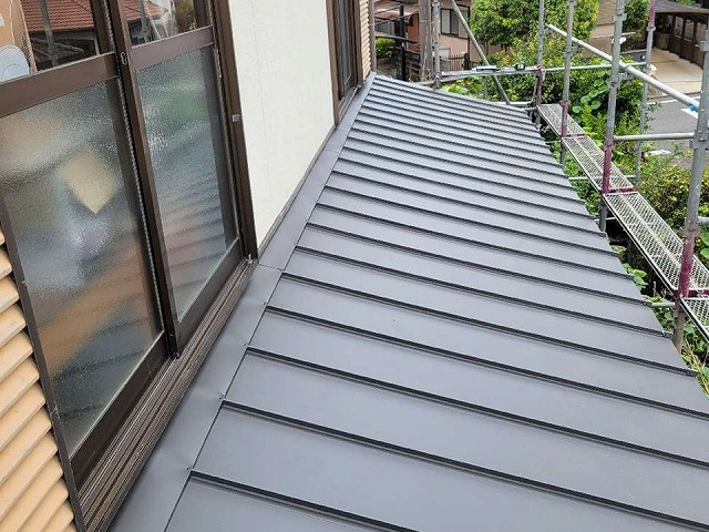 日進市の金属屋根による下屋根葺き替え工事、雨漏り対策に効果が高い立平葺きで施工