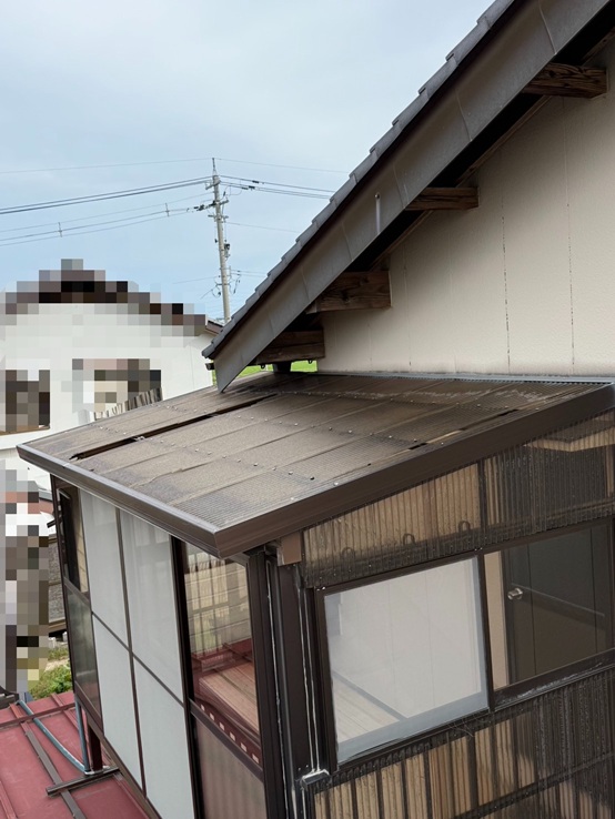 【富山市】ウッドデッキ屋根のポリカ板がめくれ、骨組みが朽ちてきているとのご相談