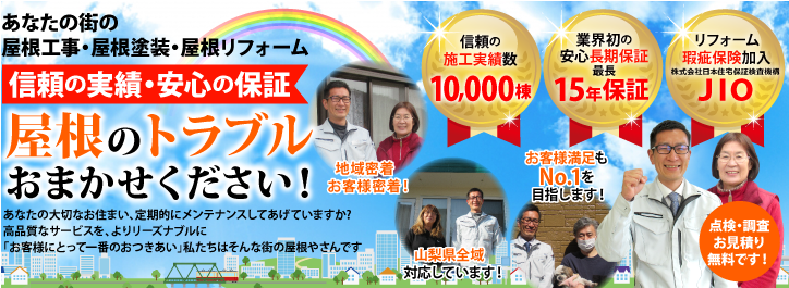 戸建てに限らず、アパート・マンション・倉庫・店舗等あらゆるご要望にお応えいたしますので、お悩みごとがあれば街の屋根やさん山梨店へ。