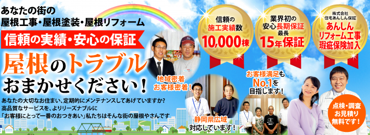 そこで、水廻りなど内装を含むリフォーム工事実績12,000件以上の経験から屋根・壁に関して最適な工事方法のご提案、アドバイス、修理、葺き替え施工などをしてお客様の困りごと(問題)を解決いたします。