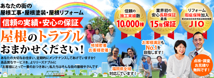 この度は、街の屋根やさん筑紫野店のホームページをご覧いただき、誠にありがとうございます。