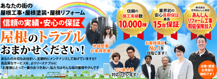街の屋根やさん金沢店はそんなお客様の不安・悩みを安心・笑顔に変えていくお仕事をさせていただきます!!