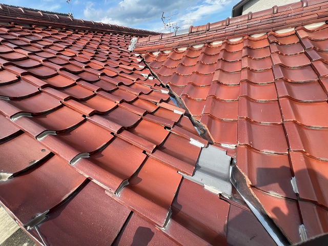 土岐市土岐津町で現地調査|部屋の角から雨漏り、赤い和瓦の谷ずれは部分葺き直しで復旧