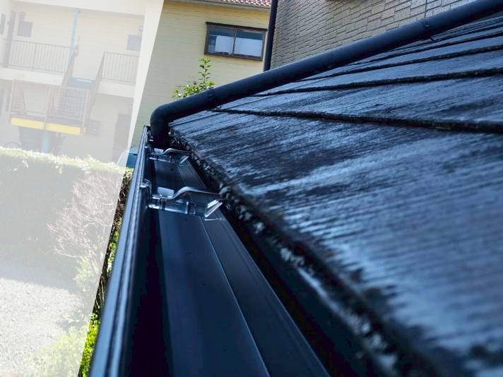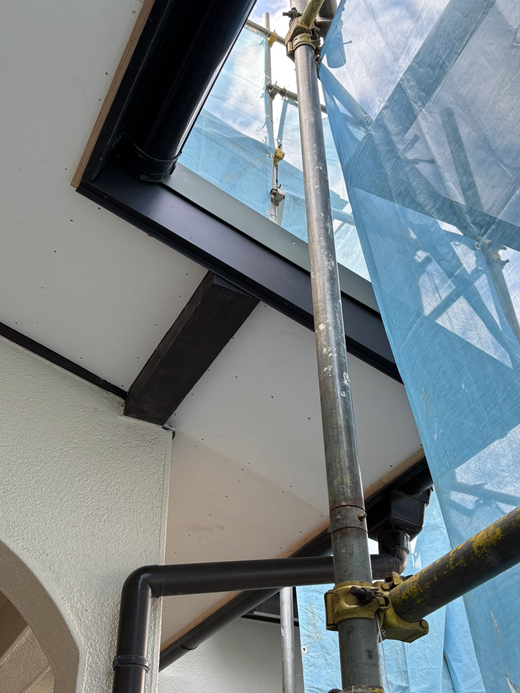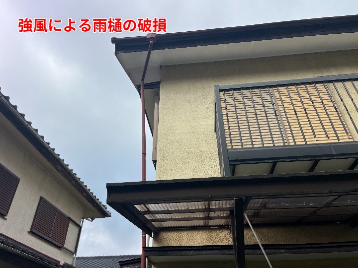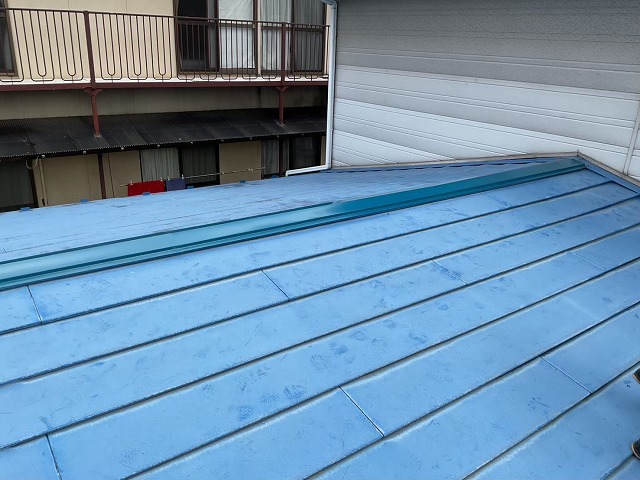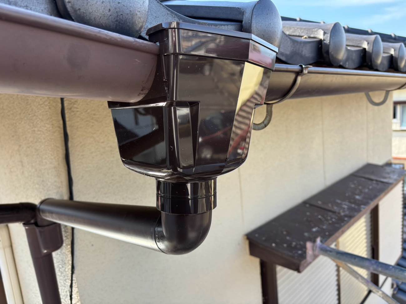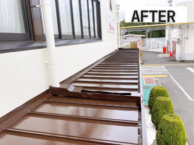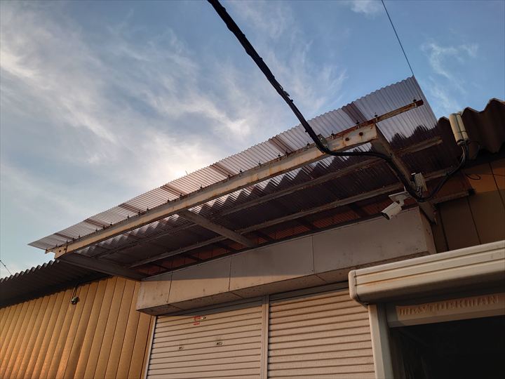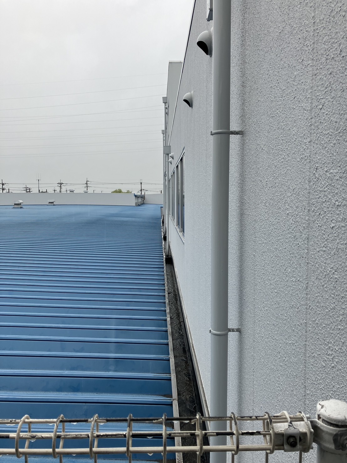 高石市|集合店舗の金属屋根(折板屋根)雨樋の交換工事
