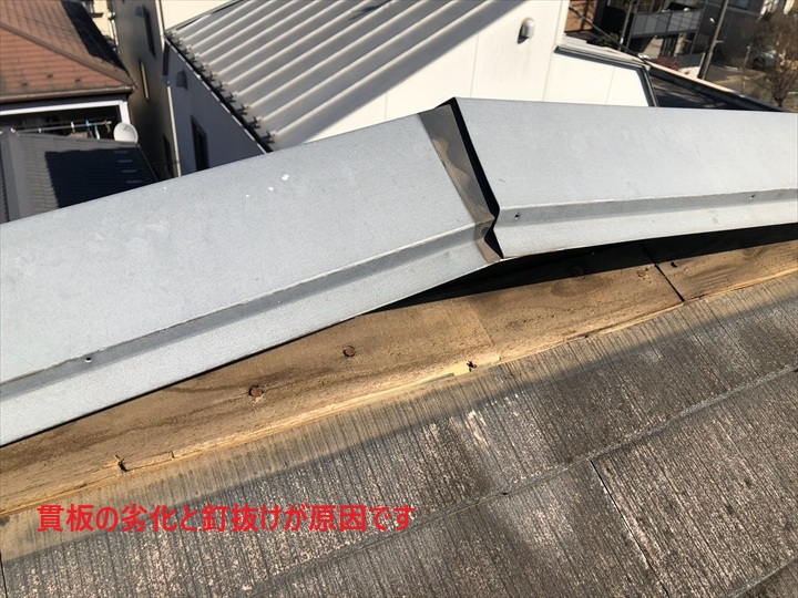 仙台市若林区 2階屋根の現地調査でサビや浮きの劣化が見られる棟板金の交換工事をご提案!