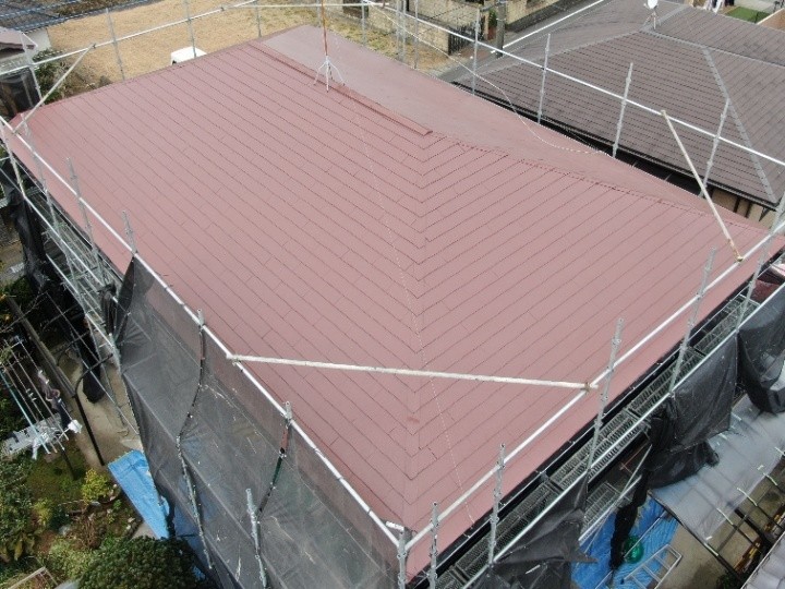 大網白里市みずほ台にて台風被害で損傷したスレート屋根にファインパーフェクトベストを用いて屋根塗装工事しました