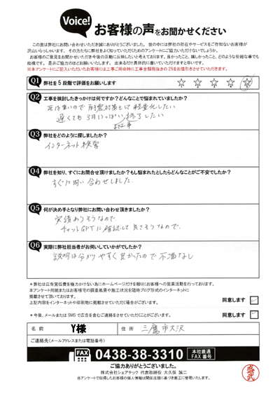 阿蘇郡高森町で訪問営業の見積に不安を覚え再調査を行ったH様の声