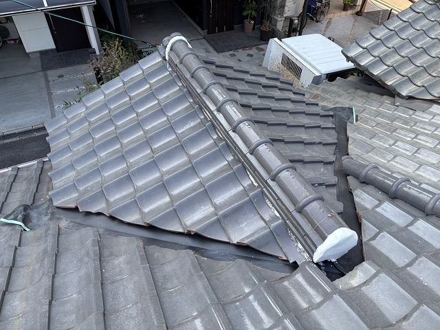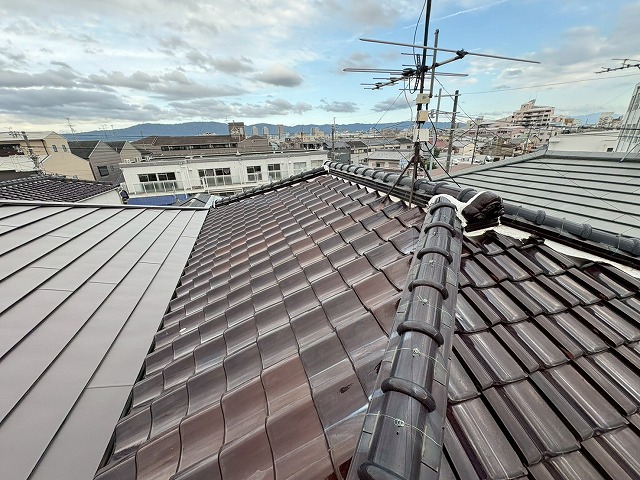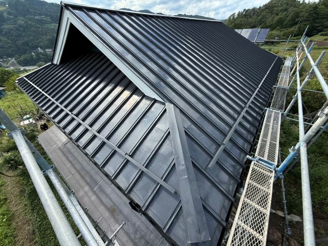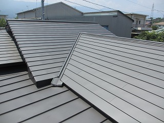 笛吹市で雨漏れのある瓦屋根をガルバリウム鋼板屋根に葺き替えました