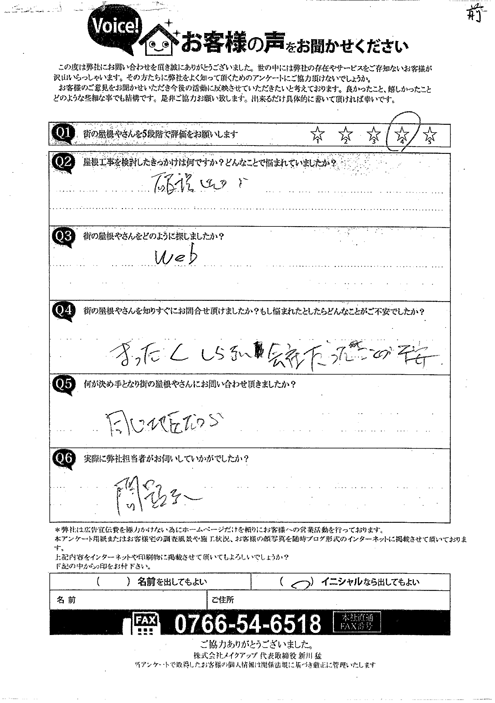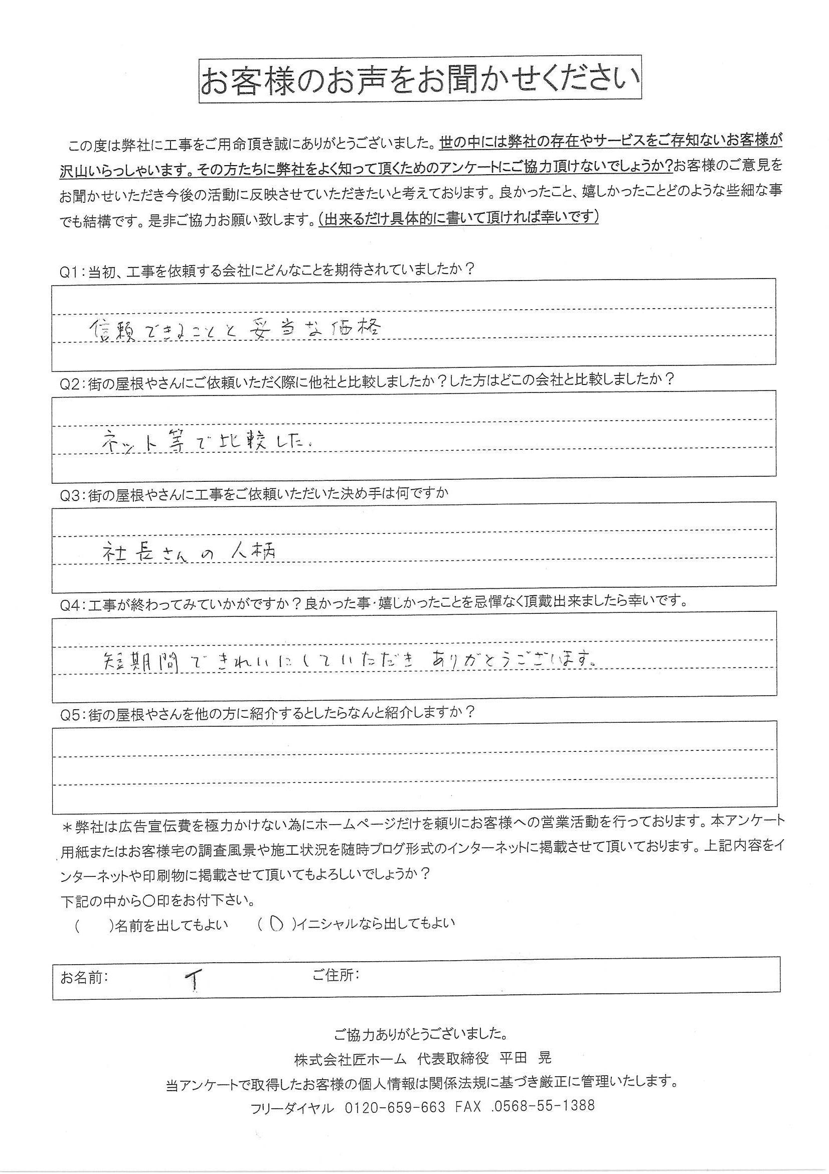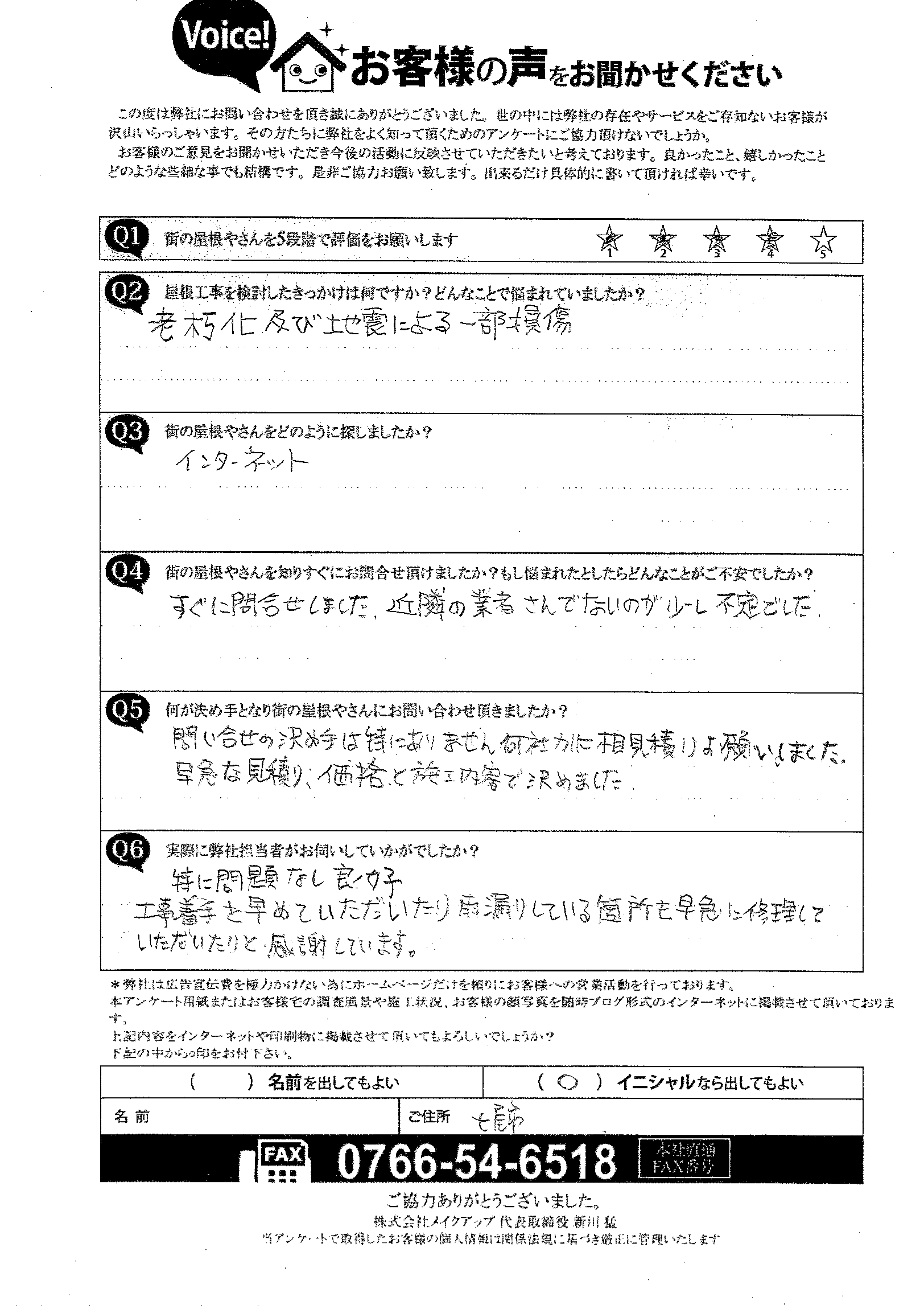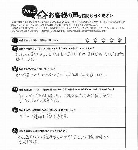 横浜市緑区中山のお客様アンケート|屋根カバーと外壁塗装へのご感想