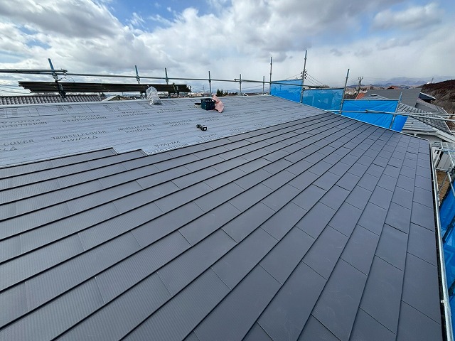 下松市で屋根葺き替え|捨て板金の設置と金属屋根材セネター施工