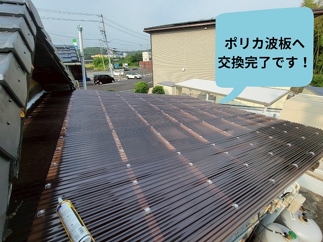 泉南郡熊取町で台風で波板が飛散しポリカ波板に張替えました!