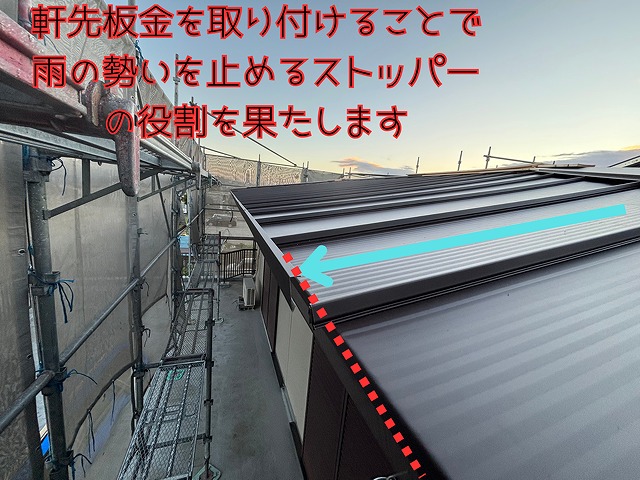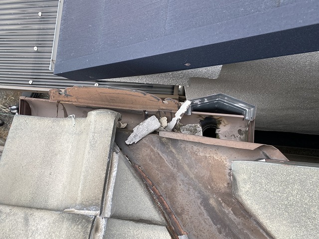 足立区東伊興にて台風被害で損傷したセメント洋瓦屋根のケラバ部分に板金工事を施工しました
