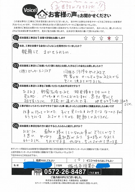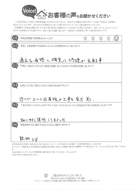 横浜市保土ケ谷区でいただいたお客様アンケート|丁寧な説明で安心できたとの声