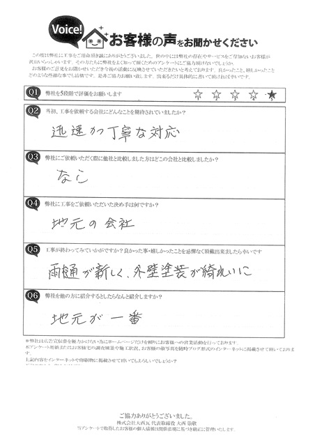 沼津市で屋根補修工事を行ったW様のお喜びの声