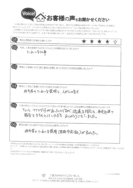 丁寧に細かく見積りを出して頂き、安心して工事を任せることができました
