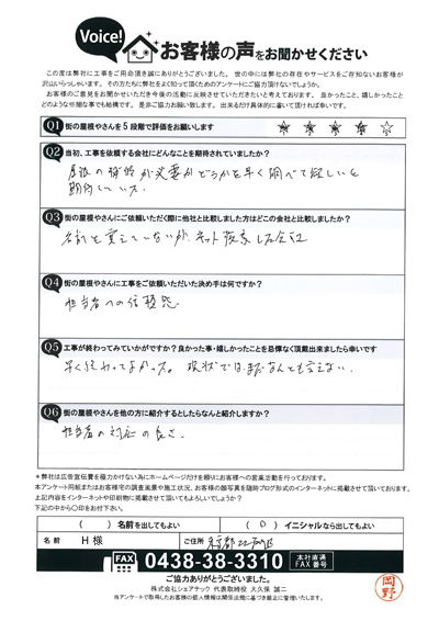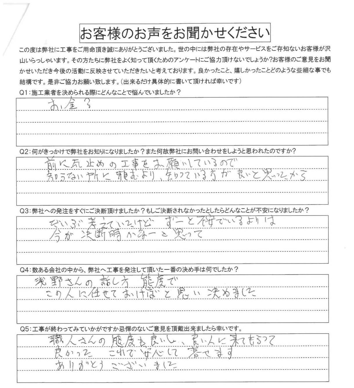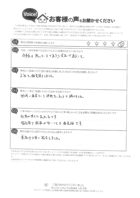 筑紫野市の外壁塗装|お客様からいただいたアンケート「口コミ」