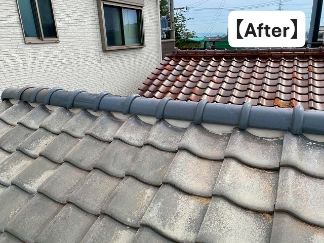 木更津市巌根にて台風で飛散した棟瓦の取り直しと瓦屋根の部分葺き直し工事を併せて施工