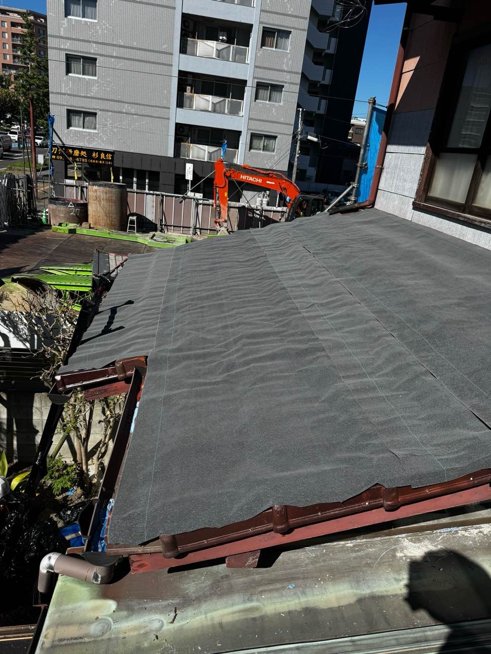 周南市で屋根カバー工事|ドーマー付き屋根にルーフィングと金属屋根材施工